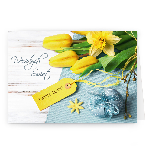 Logo i życzenia są drukowane bezpośrednio na kartce.