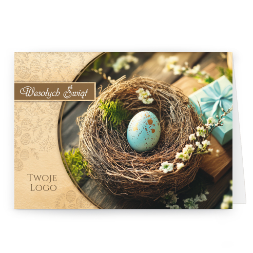 Logo i życzenia są drukowane bezpośrednio na kartce.