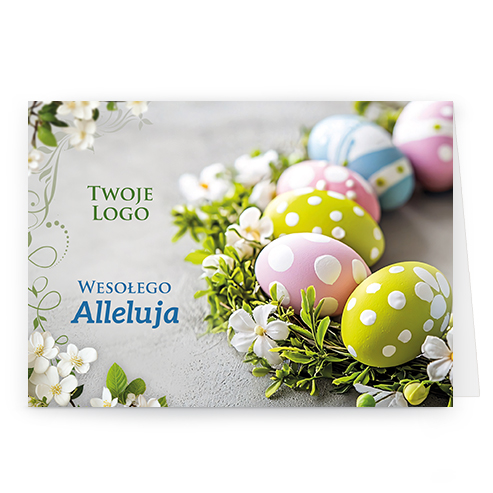 Logo i życzenia są drukowane bezpośrednio na kartce.