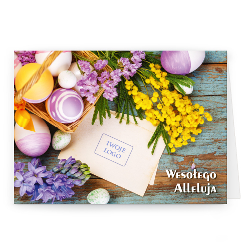 wzór: poziom_40 SPECYFIKACJA: Logo i życzenia są drukowane bezpośrednio na kartce. Do każdej kartki dołączona jest biała koperta C6. Istnieje możliwość zmiany haseł na froncie na dowolnie podaną wersję językową. |