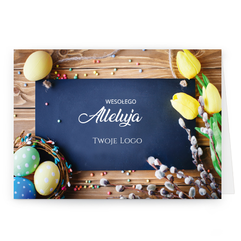 Logo i życzenia są drukowane bezpośrednio na kartce.