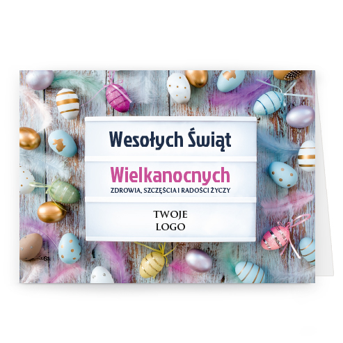 Logo i życzenia są drukowane bezpośrednio na kartce.