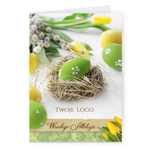 Logo i życzenia są drukowane bezpośrednio na kartce.