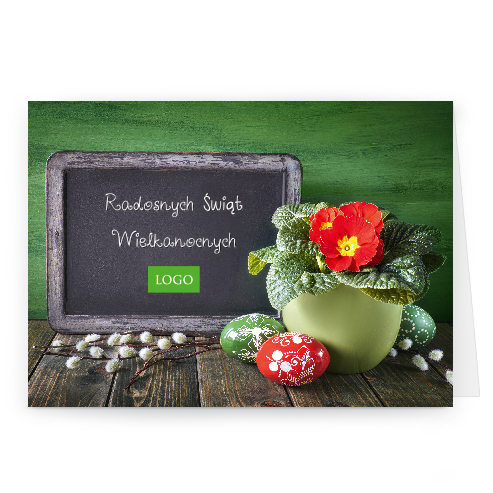 Logo i życzenia są drukowane bezpośrednio na kartce.