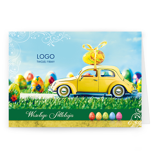 Logo i życzenia są drukowane bezpośrednio na kartce.