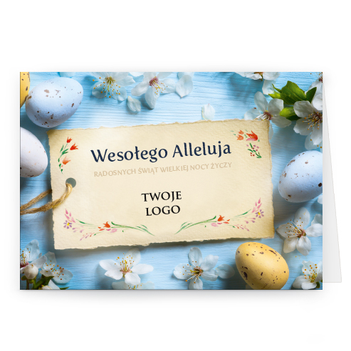Logo i życzenia są drukowane bezpośrednio na kartce.