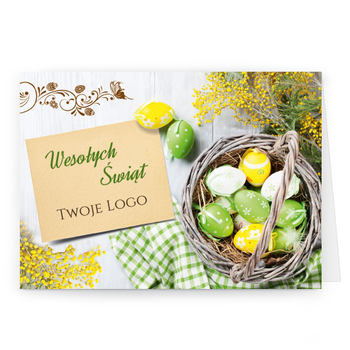 Logo i życzenia są drukowane bezpośrednio na kartce.