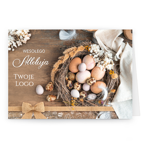 Logo i życzenia są drukowane bezpośrednio na kartce.
