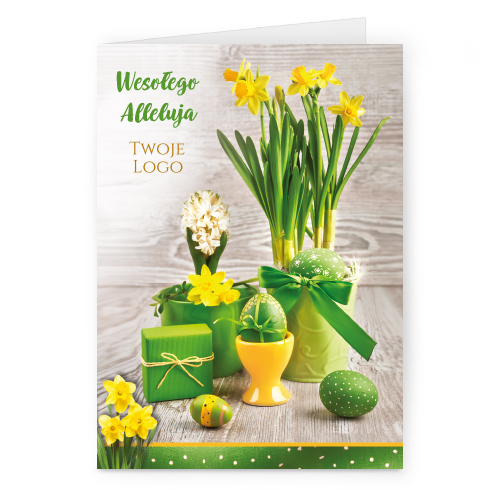 Logo i życzenia są drukowane bezpośrednio na kartce.