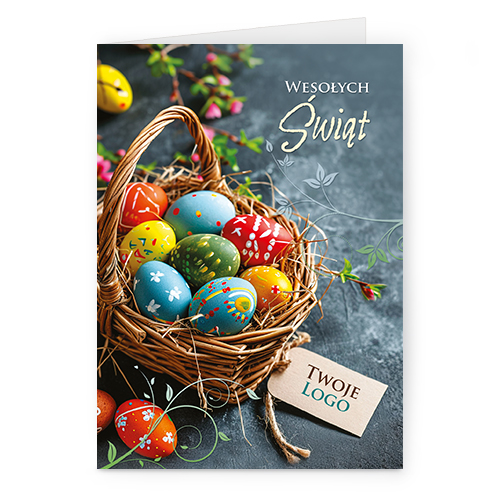 Logo i życzenia są drukowane bezpośrednio na kartce.